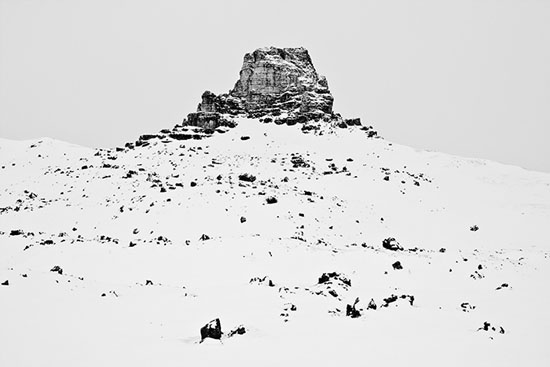 This from earlier this week, at 7500 feet in the Dolomites, in a snowstorm, at minus 20 degrees Celsius. Other than this relatively clear image suggests, visibility was extremely poor, and the storm covered my own footprints with snow within less than ten minutes. So what I did to get back safely was to photograph some reference points when I walked up (rock formations etc.), and looked at those images on the back of my camera when I walked back down. Worked like a charm.